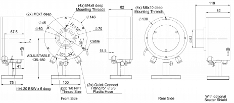 15K-W-BB-45是一款用于極高功率的水冷熱電堆功率/能量激光測量探頭,孔徑45mm??蓽y量 100W 至 15,000W的功率。配備有一個偏轉錐和環形涂層,可承受10kW/cm2的高功率密度。覆蓋0.8-2以及10.6μm的光譜范圍。探頭配有5米長的標準電纜,用于連接儀表或PC適配器。