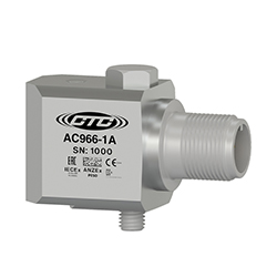 低電容,本質安全IEC認證(IECEX/ANZEX/PESO/KC/EAC)加速度計,頂部出口2針連接器,100 MV/G,±10%