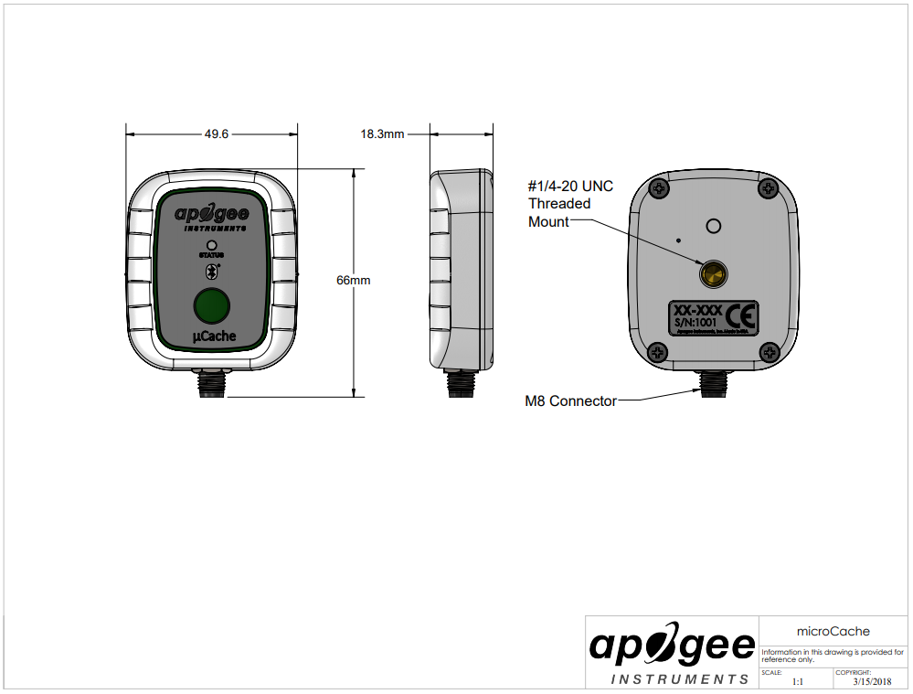 新的Apogee microCache (μ Cache)是一種耐用的,電池供電,藍牙®低能量,單傳感器數據記錄設備,可以與Apogee的SQ-110原始量子,SQ-500全光譜量子,SQ-620擴展范圍PFD傳感器,SQ-640量子光污染傳感器,SP-700光度計,S2-141 PAR-FAR傳感器,S2-131紅-遠紅傳感器,SP-110硅電池熱量計,SP-510-SS和SP-610-SS熱電堆熱量計,SU-200 UV-A傳感器,SI-100系列紅外輻射計。