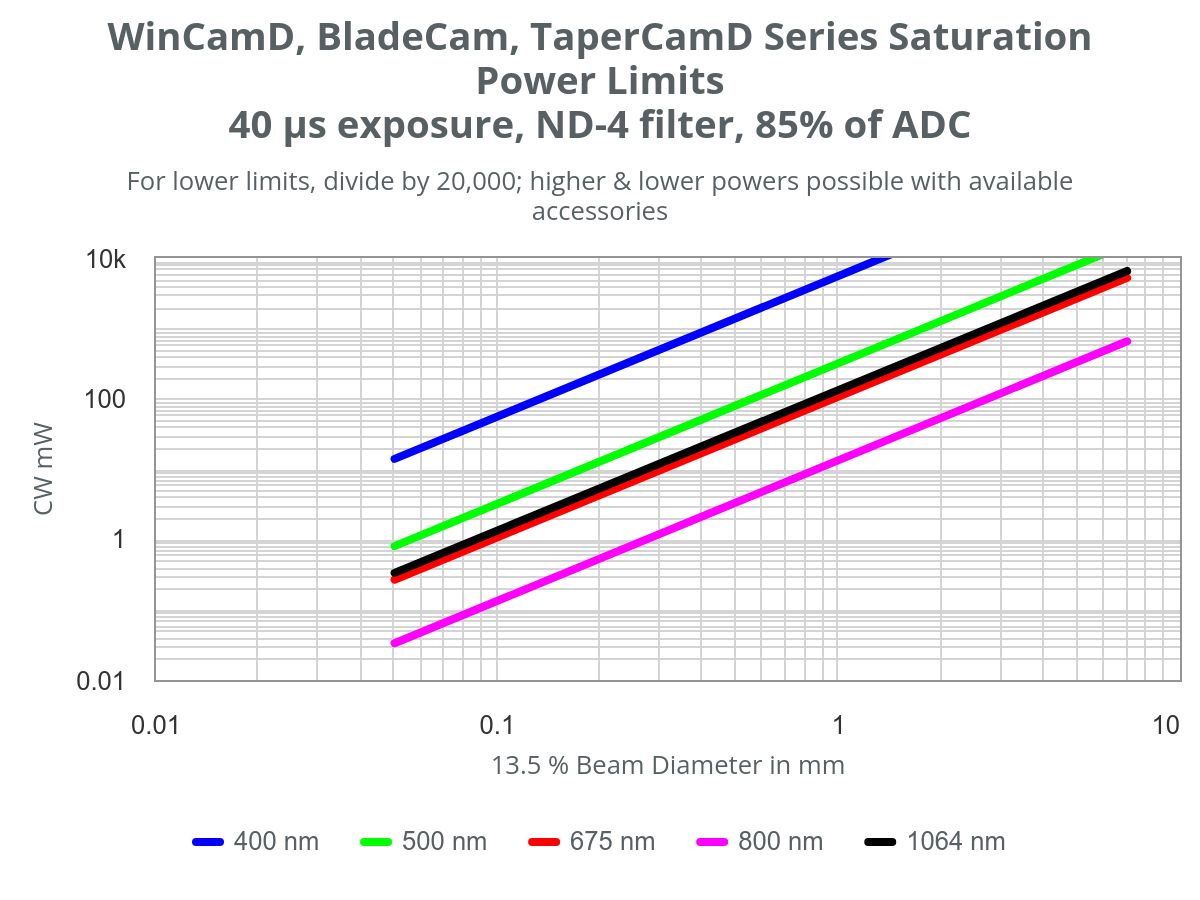 測量的光束功率 請參閱數據表中的飽和功耗圖