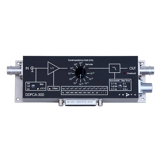 可調(diào)亞飛安放大器 DDPCA-300 是各種低噪聲跨阻放大器的新成員。非凡的設(shè)計實現(xiàn)了最低 0.2 fA/√Hz 和 0.4 fA 峰峰值的出色輸入噪聲值。