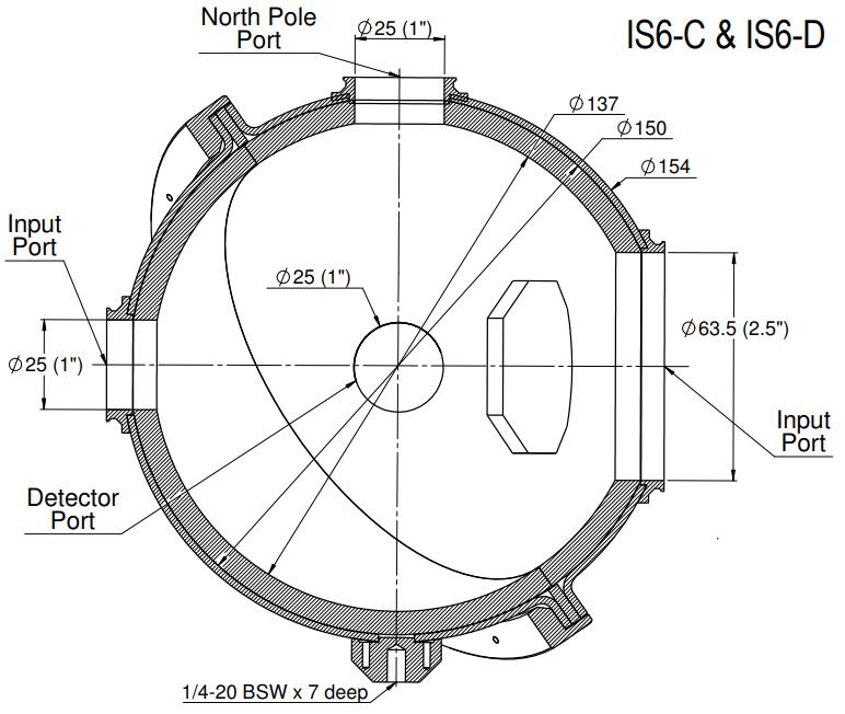 IS6-D 是一個 6” 積分球(內(nèi)部 5.3”),用于發(fā)散 (D) 光束。它沒有檢測器,IS6-D 的檢測配置由用戶完成。也可作為均勻光源使用。