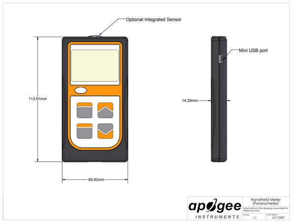 MP-200 有一個手持式儀表,通過電纜連接,以 W m -2為單位顯示和存儲測量值。該傳感器結合了硅電池光電二極管和堅固的自清潔傳感器外殼設計。典型應用包括農業、生態和水文天氣網絡和太陽能電池板陣列中的短波輻射測量。