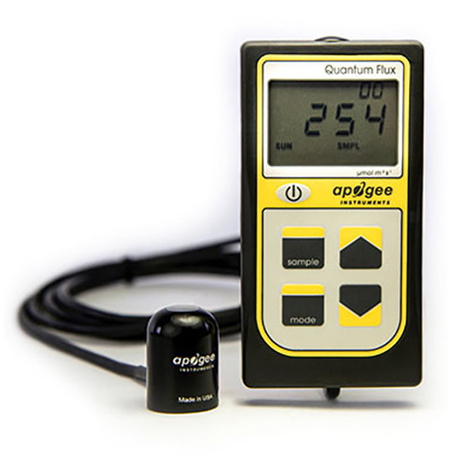 堅固且易于使用 - Quantum 傳感器頭由機加工鋁制成,并用環氧樹脂灌封,可在包括水下在內的惡劣環境中使用多年。手持式儀表通過電纜連接,可顯示實時讀數、記錄樣本并記錄平均強度和日光積分 (DLI) 測量值。與傳感器頭不同,手持式儀表不防水。