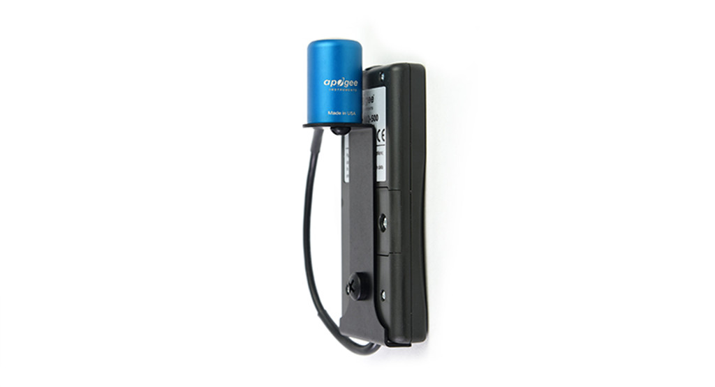 MQ-501 設計為易于使用的手持式儀表,用于抽查測量。該儀表包括 AM-001 儀表安裝支架,用于將傳感器安裝在儀表的水平面上,以及約 0.17 m 的電纜以容納支架長度。全光譜傳感器采用藍色增強型硅光電二極管和定制濾光片,具有堅固的自清潔傳感器外殼設計,陽極氧化鋁主體和丙烯酸漫射器。典型應用包括室外環境、溫室和生長室中植物冠層的 PPFD 測量,以及相同環境中的反射或冠層下(透射)PPFD 測量。