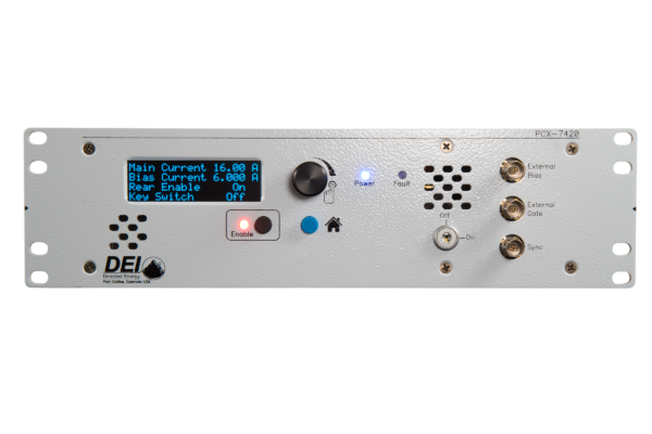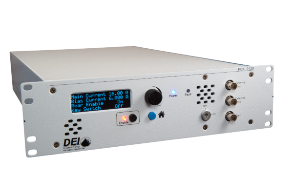 PCX-7420-B 能夠提供 QCW(脈沖)和 CW (DC) 輸出。它可以用作電流為 0.050 A 至 5.8 A 的 CW 驅動器,也可以用作電流為50 mA 至 21.5 A 的脈沖/QCW 驅動器。此外,輸出可以偏置為 3 A 至 5.8 A 的任何 CW 電流,然后以脈沖形式越過該偏置電流,最大值可達 15.7 A。一項新功能允許偏置電流獨立于主電流觸發器進行脈沖和觸發。