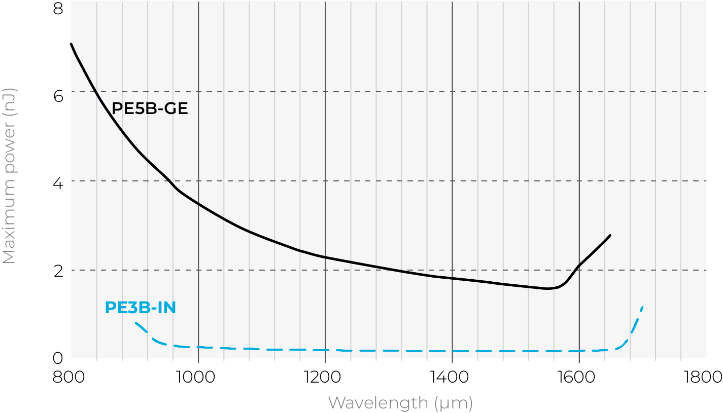 Gentec-EO PE5B-Ge-D0光電二極管探測器的激光能量測量高達 2.4 nJ。
