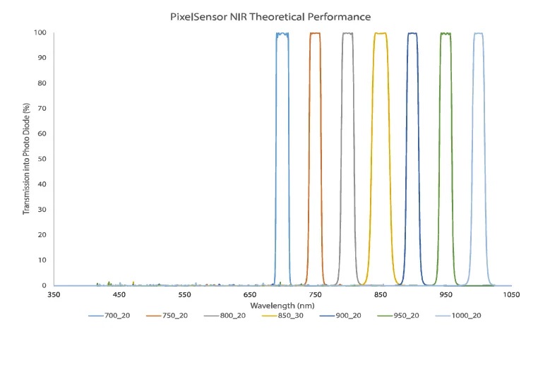 VIS-NIR PixelSensor 檢測可見光 (VIS) 到近紅外 (NIR) 光譜中的波長