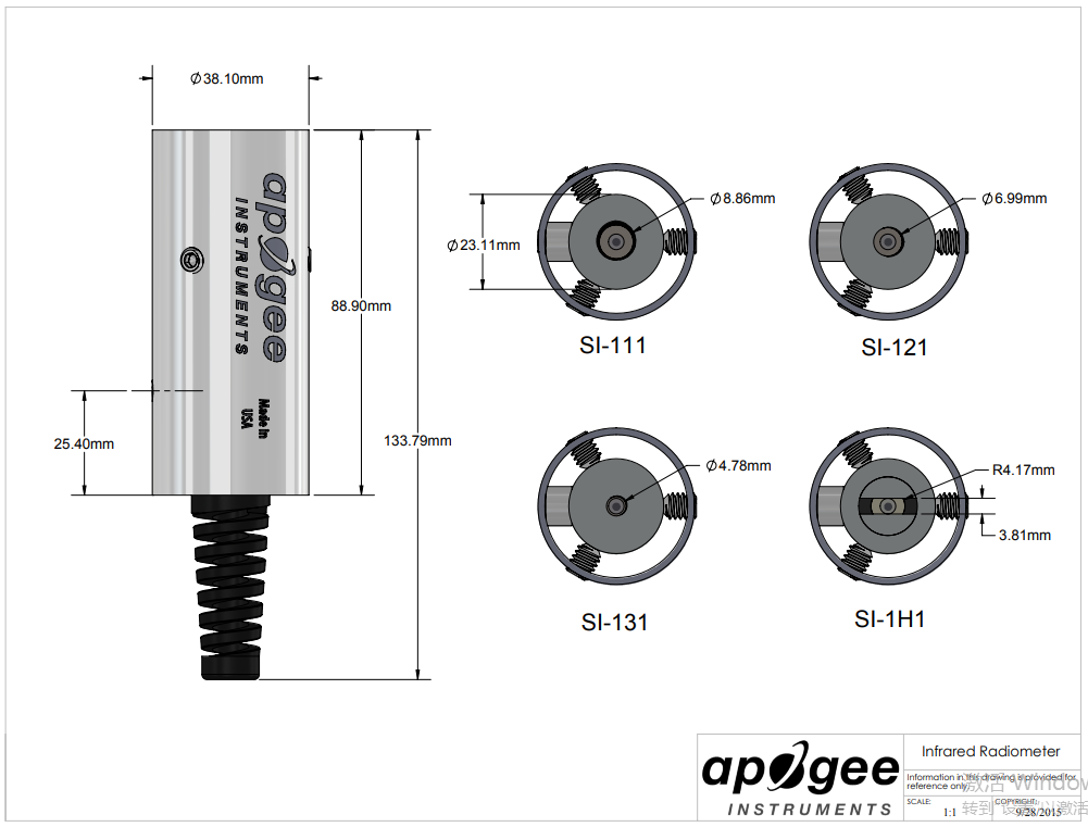 SI-121:窄視場紅外輻射計傳感器圖紙: