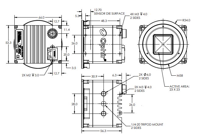 相機正面到傳感器的標稱距離為 12.7mm,不包括 SM2 適配器。