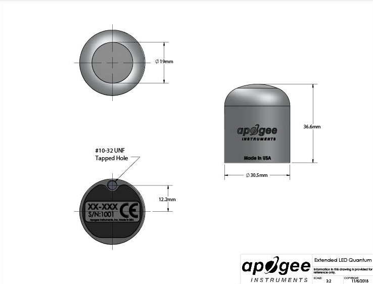 SQ-618 Modbus數字輸出 400-750nm ePAR 傳感器圖紙: