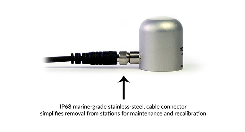 該傳感器的模擬版本 (SQ-640) 帶有內聯電纜連接器,距離傳感器頭 30 厘米,可作為長電纜尾纖傳感器標準使用,或通過擰下連接器與我們的 microCache 藍牙微型記錄器一起使用,丟棄較長的電纜,然后將傳感器擰到 microCache 上的配合連接器上。