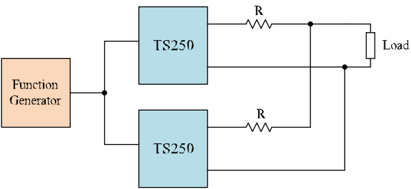 圖 3. 并聯兩個 TS250 波形放大器使輸出電流加倍