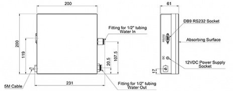 The 6K-W-BB-200x200 is a calorimetric water cooled thermal power/energy laser measurement sensor (which measures input and output water temperature and flow rate). The sensor measures high powers with a very large 198x198mm aperture. It can measure power from 200W to 6,000W. It covers the spectral range from 0.19 - 20μm. The sensor has two operation modes: