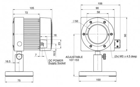 The BDFL500A-BB-50 is a fan cooled beam dump with a 50mm aperture for up to 500W. It can withstand power densities to 7kW/cm2 at full power and has a spectral range from 0.19 to 20μm.