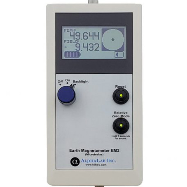 The Earth Magnetometer Model EM2 measures small variations from location to location in the Earth magnetic field associated with buried magnetic masses. Unlike metal detectors, a magnetometer signal is not attenuated by rock, dirt, mud or water, so targets can be detected at great depth. (If D is the diameter of a mass of magnetizable material, the EM2 can detect it as deep as 40 times the diameter D, whether the mass is specifically magnetized or not.) It is the lightest weight and lowest cost magnetometer available which can reliably measure differences down to 1 nT from point to point. (Because of random fluctuations in the Earth field due to the ionosphere, 1 nT is about the finest usable resolution.)