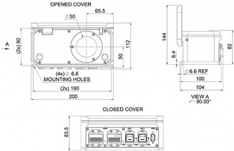 | Dimensions | 200 Lx123 Wx144 H (mm) - Open, 200 L x 100 W x 84 H(mm)-Closed Connectors: AIDA, DB9 |