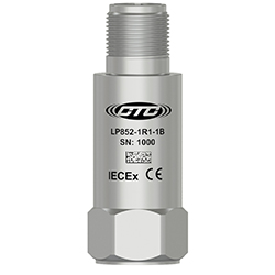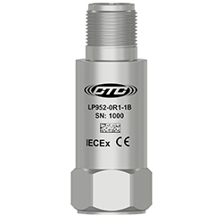 Low Capacitance, Intrinsically Safe IEC Certified (IECEx) Loop Power Sensor, 4-20 mA Output Proportional to Vibration in Acceleration, Top Exit 2 Pin Connector