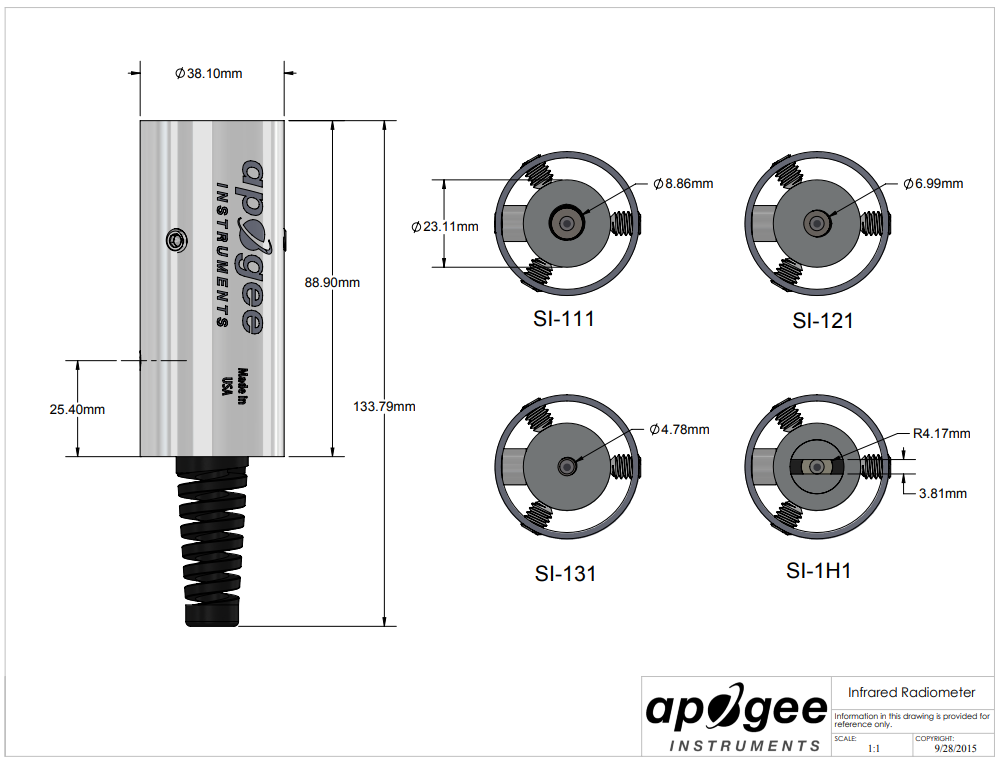 MI-210: Research-Grade Standard Field of View Infrared Radiometer with Handheld Meter Drawing: