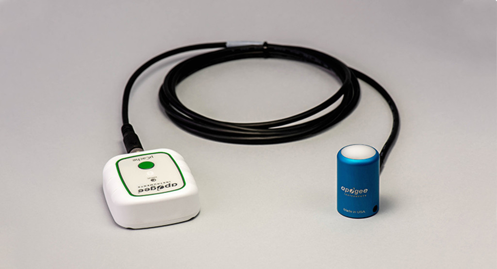 The new AT-100 microCache (μ Cache) micro recorder is a rugged, independent battery powered device that can collect more than 400000 data points, and use our free Apogee Connect application to connect your sensor to your iOS or Android device through Bluetooth. The application allows you to perform real-time measurements, set custom data recording intervals, monitor daylight integration and draw charts, ensure light cycles, download data sets, and more.