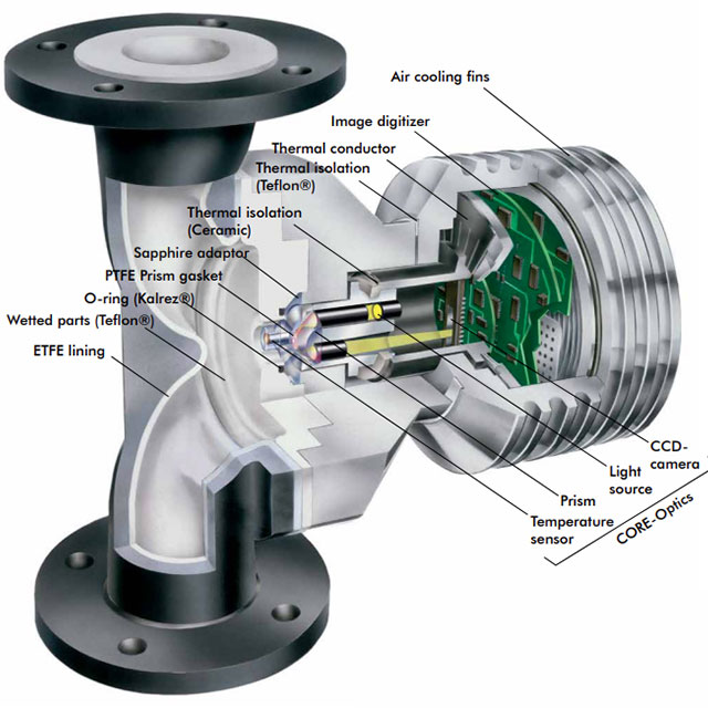 The Vaisala K?PATENTS® Online Refractometer PR-23-W/M measurement technology utilizes solid-state optical elements and a CCD detector to digitally measure the refractive index. The measurement accuracy is ±0.0002 RI, which corresponds to 0.1% (percent by weight).