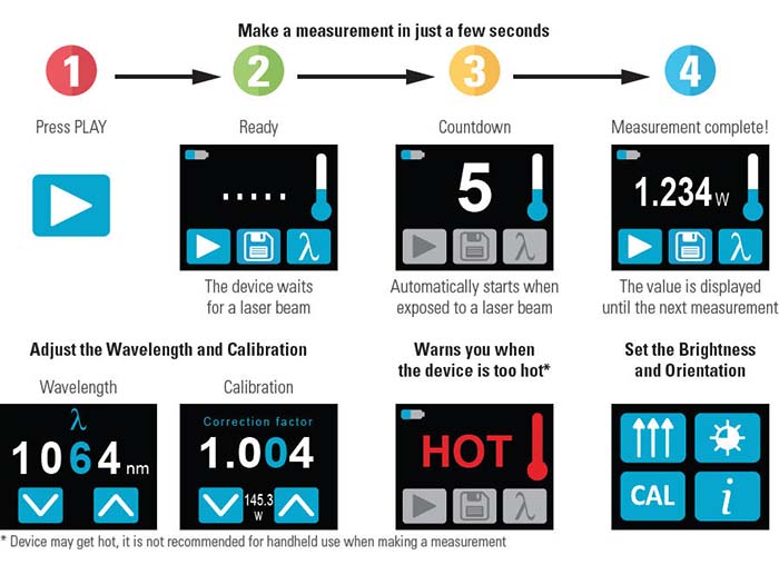 Thanks to a low noise level and high damage threshold, the PRONTO can measure powers from 1 W to 50 W.