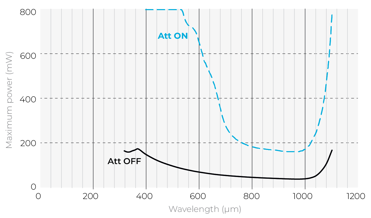 1. At 532 nm, with attenuator. See curves for maximum power at other wavelengths.