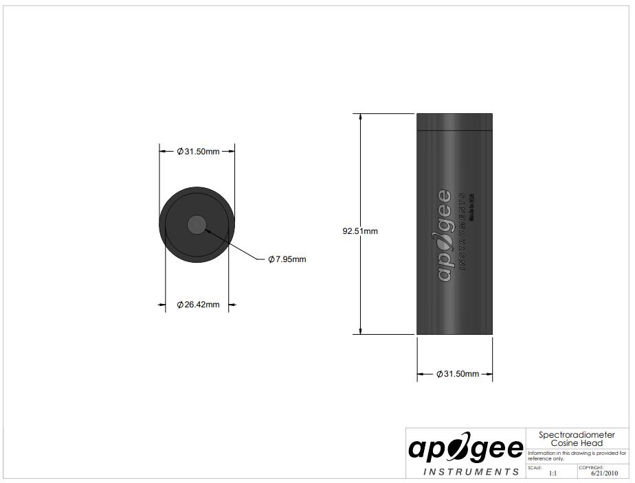 Apogee cosine corrected radiometric head with black cap