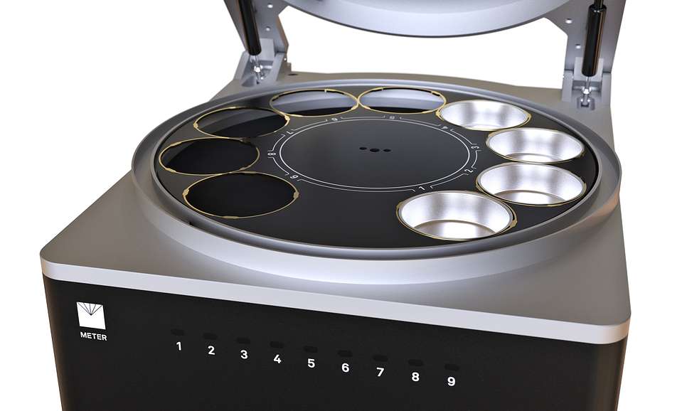 Auto dry-detection — As evaporation slows, the ROS 1 weighs samples more and more frequently, then stops precisely when the sample is dry