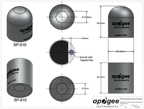 • Description: The SP-610 is a downward-looking thermopile pyranometer with an analog output range of 0 to 300 mV. The sensor incorporates a blackbody thermopile detector and flat glass window with a rugged housing