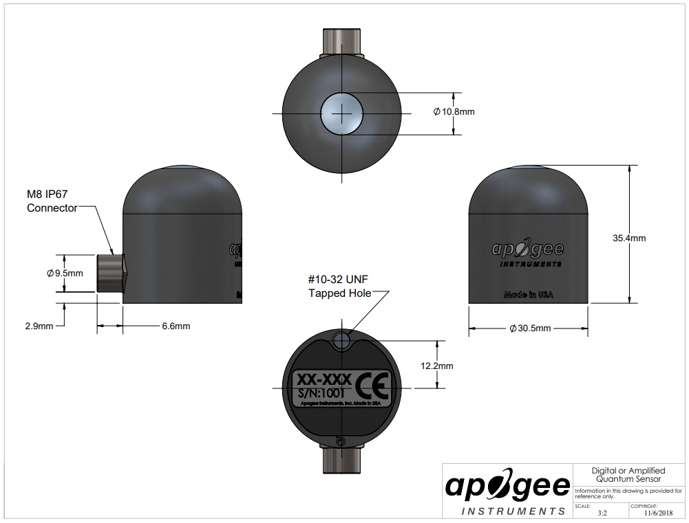 | Non-linearity | Less than 1 % (up to 2500 μmol mˉ2 sˉ 1) |