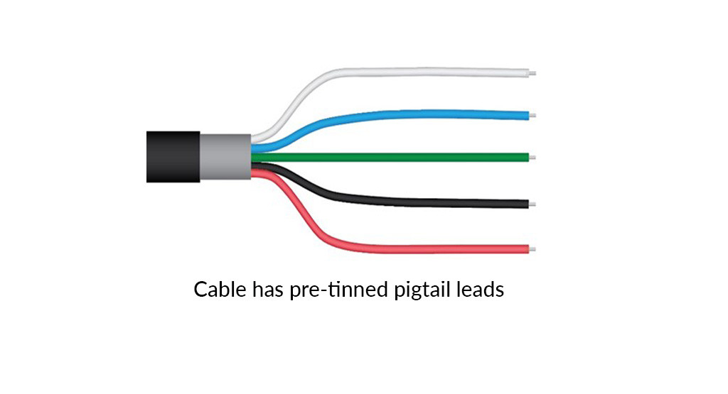 | Cable | 5 m of two conductor, shielded, twisted-pair wire, additional cable available in multiples of 5 m; TPR jacket (high water resistance, high UV stability, flexibility in cold conditions); pigtail lead wires |