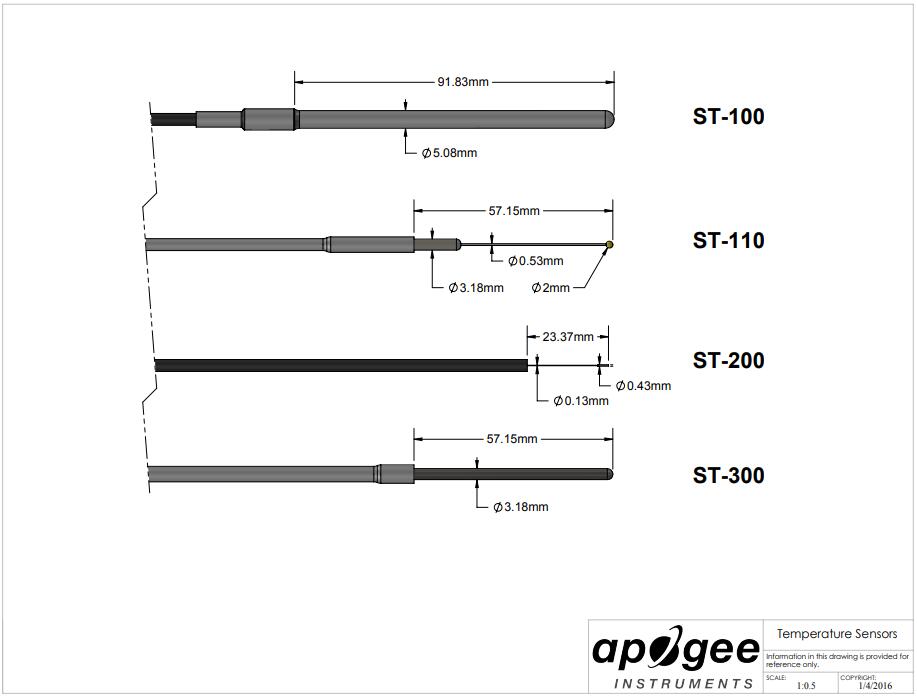 ST-150 is a 1/8-inch Class A PRT (Platinum Resistance Thermometer) with protection class of IP67. A white heat shrink tube is used on the cable behind the PRT to greatly reduce the heat transferred to the sensor. The size of the PRT sheath is 3mm in diameter and 65mm in length.
