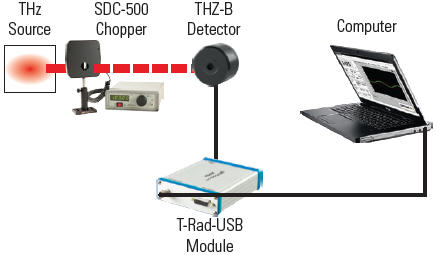 All THZ-B detectors require the use of an optical chopper, like our SDC-500, to sync the signal at either 5 Hz (DA models) or 25 Hz (DZ models).