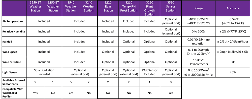 The fully integrated WatchDog 3580 Wireless Sensor Station measures whatever you decide to measure, there are no preset sensors with this station. If you are in an environment where measuring soil moisture is important, you can measure it at different depths along with temperature. It records and communicates the data to the cloud using its internal modem or radio.