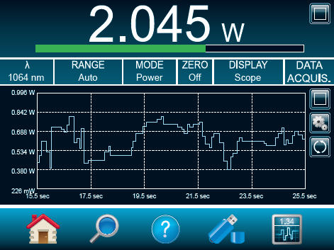 Measure mode: use this menu to decide what type of measurements will be displayed: average power, single shot energy, pulse-to-pulse energy, etc.