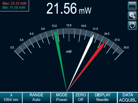 Exactly like an analog needle, only faster! This mode is particularly useful when tuning a laser. The real time value is also displayed at the top of the screen.